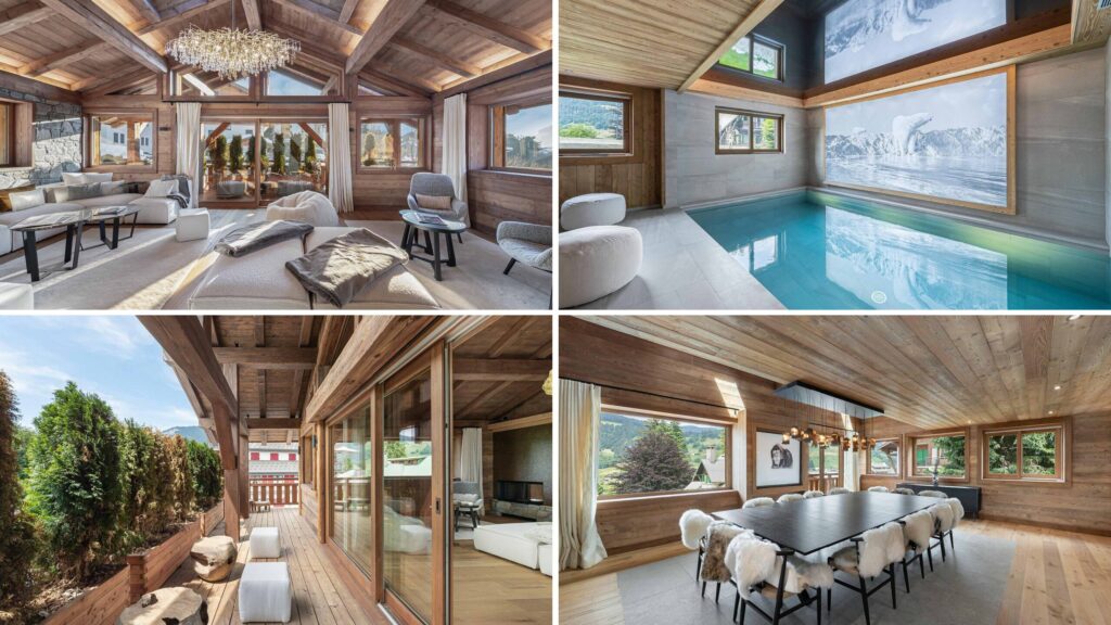 Chalet Dala is a luxurious Alpine retreat in Mont d’Arbois, Megève, blending refined design with natural beauty. With 500 sqm of elegant living space, it comfortably hosts 12 guests across six cosy bedrooms. Interiors balance minimalism and warmth, featuring local craftsmanship and inviting natural materials. The chalet’s spa includes a sauna, hammam, indoor pool with gold accents, outdoor Jacuzzi, and fitness room for ultimate relaxation. Located near the Evasion Mont-Blanc ski area, Mont d’Arbois Golf Club, and Four Seasons Hotel, Chalet Dala offers the perfect blend of adventure, gourmet dining, and serene alpine elegance for an unforgettable escape.